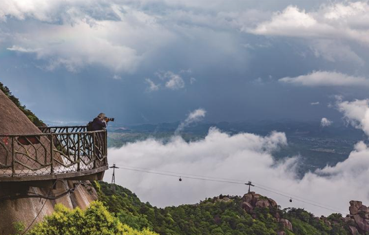 乘坐索道缓缓上升,穿过层层云雾,仿佛踏入了另一个世界,奔赴一场云端之上的春日之约。步出缆车,眼前豁然开朗,阳春三月的葛仙山,被春雨洗得一尘不染,氤氲的雾气缠绕在山腰,飘忽在殿宇之间,将整座仙山笼罩得如梦似幻,宛如蓬莱仙境。深深吸一口气,空气中满是草木的清香,还夹杂着山野间第一抹新茶的鲜爽,沁人心脾,瞬间驱散所有疲惫。